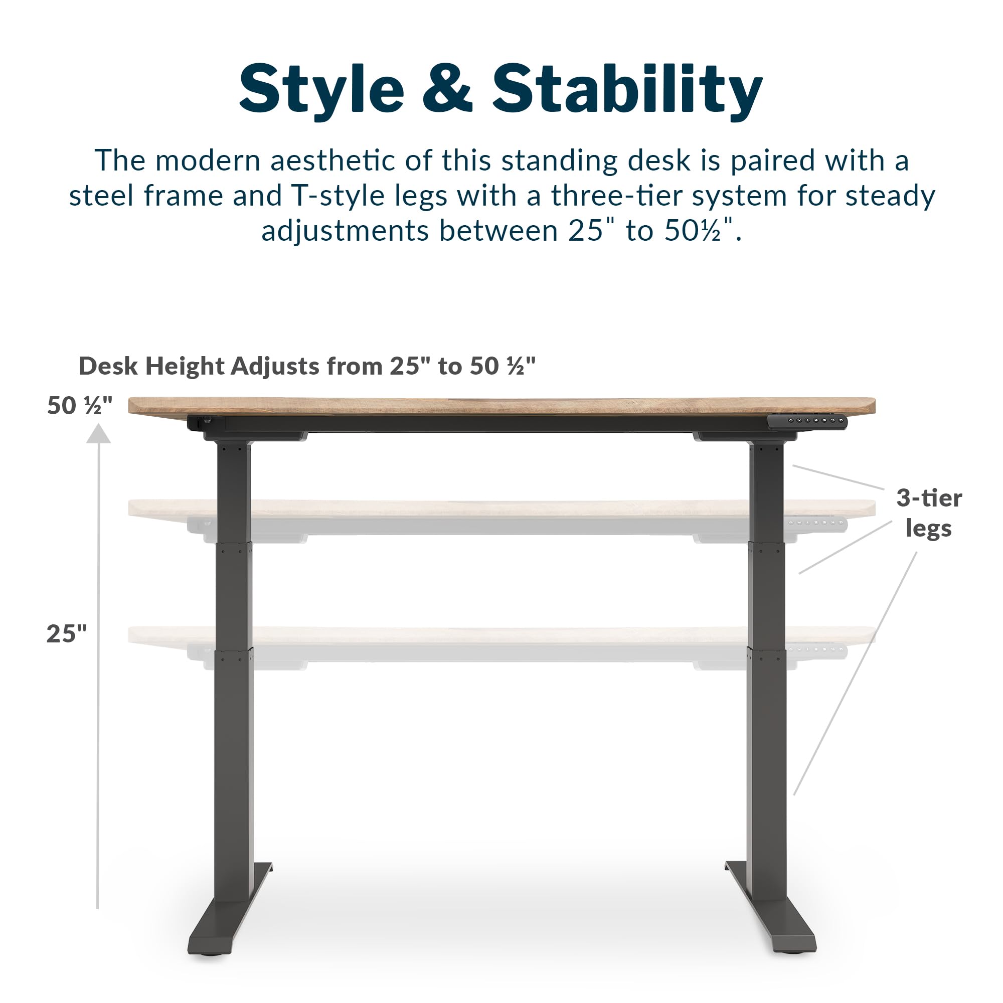 - Customizable Height Control: Easily switch from sitting to standing with quiet electric lift and 4 programmable memory settings. Height range suits users from petite to tall (25”–50.5”).