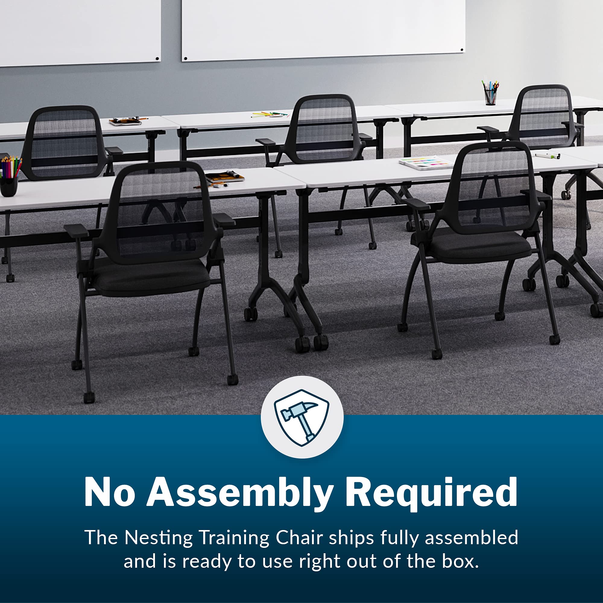 Vari Nesting Training Chair - Comfortable Ergonomic Seating for Office or Conference Space - Folding Seat with Rolling Casters for Easy Storage and Mobility - No Assembly Required - Set of 2