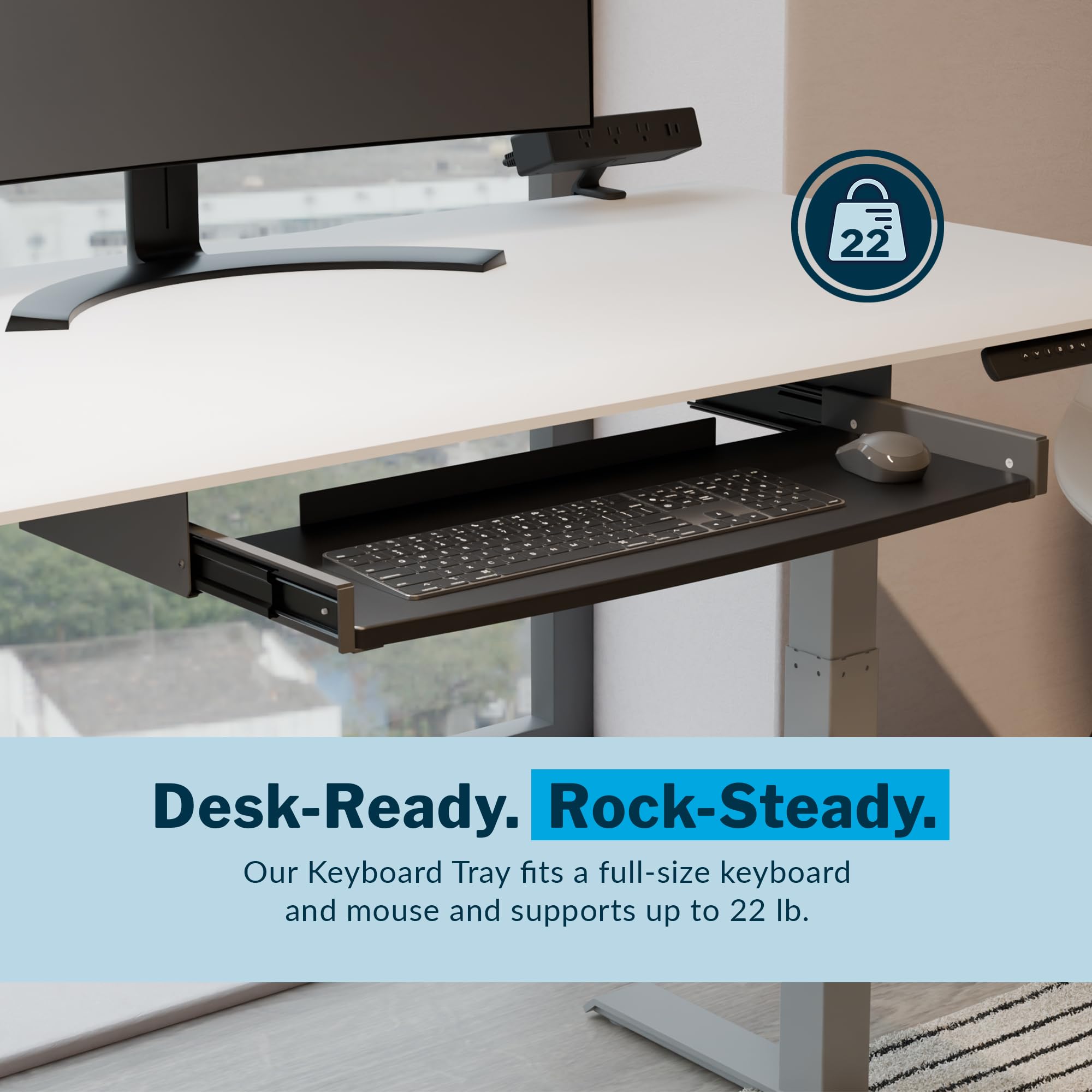 - Space-Saving Design: Keeps your full-size keyboard and mouse (supports up to 22 lbs) neatly tucked under the desk, freeing valuable desktop space