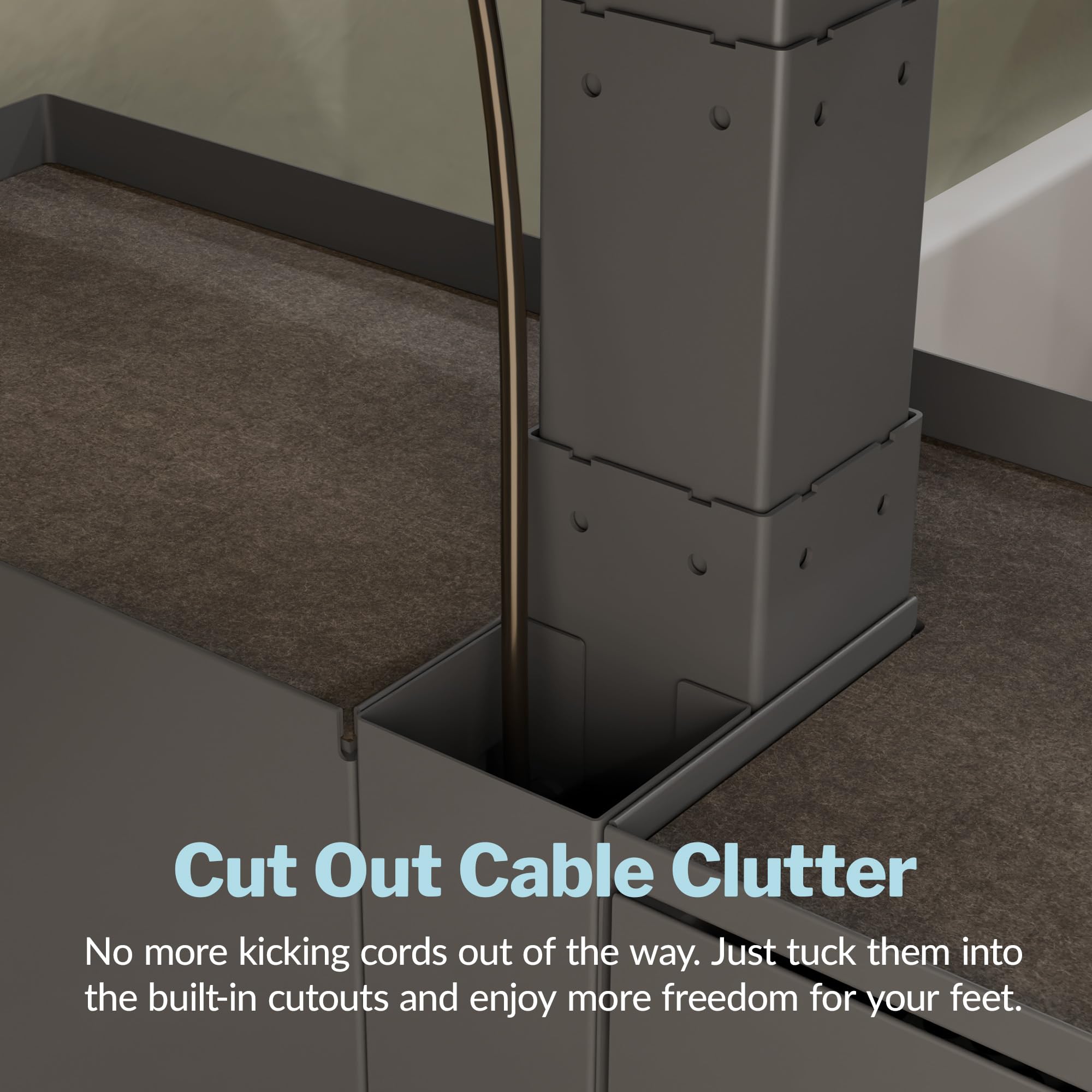 - Smart Cable Management: Built-in cutouts route cords neatly behind your desk, preventing tangles and freeing up legroom for a more functional and clutter-free workspace