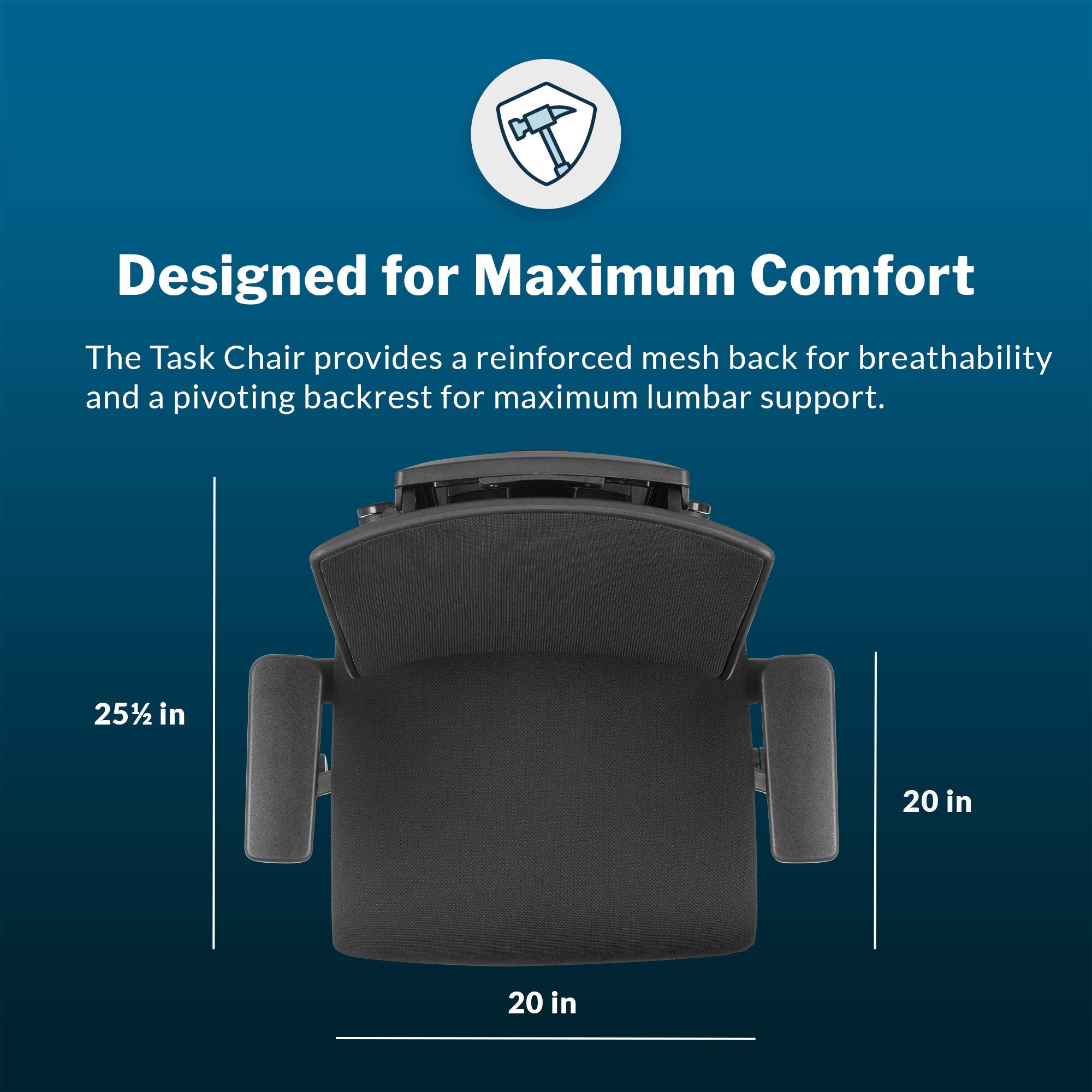 Vari Task Chair- Varidesk Comfortable Ergonomic Office Chair with Mesh, Armrests and Rolling Casters - Easy Assembly, 300lb Capacity - Lumbar and Back Support - Home Office Chair- Black